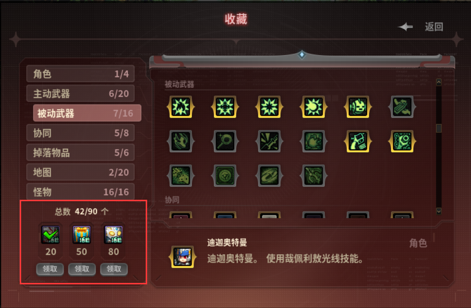 在小游戏当中解锁角色、技能、武器等图标,还可以收纳进收藏馆当中,累积收集20、40、60枚图标,分别可以获得梦比优斯奥特曼觉醒插图、奥特曼传记怪兽宠物自选礼盒、特利伽奥特曼觉醒插图。