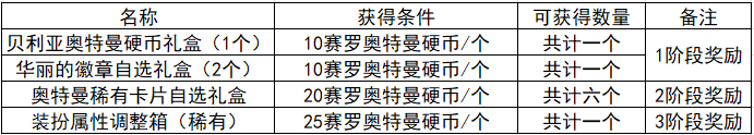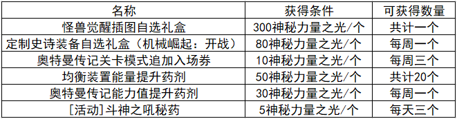 获得的神秘力量之光可以在全息赛罗奥特曼商店当中兑换奖励,下面是奖励详情: