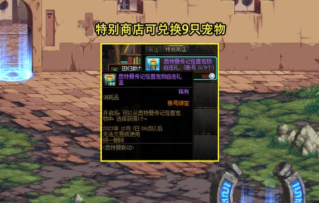 此外,还可以在奥特曼NPC的特别商店中,兑换奥特曼传记怪兽宠物自选礼盒奖励,可兑换的次数总共为9次,可选的宠物有11只,对于想凑20只宠物触发宠物右的玩家来说,帮助还是挺大的。