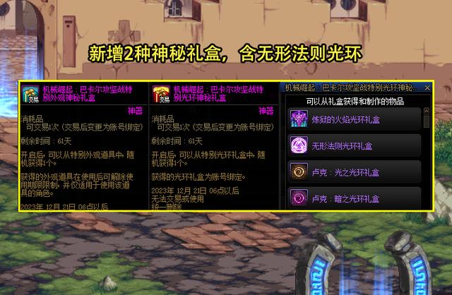 巴卡尔竞拍奖励调整后,新增外观神秘礼盒,以及光环神秘礼盒,且均是可交易状态,外观礼盒包含8种背景画面/字体,光环总共有13种。其中最让人惊喜的莫过于无形法则光环的加入了,要知道这个光环获得难度极高,不少暖暖党刷2年也未刷到,这次加入算是圆梦了。