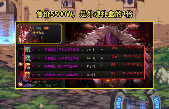 也正因为无形法则光环的加入,以及很多玩家都把团本次数清完的原因,第一天上线的价格也是非常昂贵的!其中特别外观神秘礼盒售价为2500万,但是光环神秘礼盒售价却高达5500万,两者差距2倍都不止,可想而知,拥有无形法则的光环礼盒更受欢迎,但这也意味着开启无形法则光环的成本颇高。理论上7.15亿就能开到,但如果是非酋玩家,花费10亿金币也不一定能弄到手。