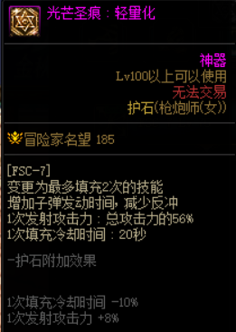 新增45级新技能太阳神光炮,其技能形态与释放手感与男枪炮师的80级技能MSC-7类似。