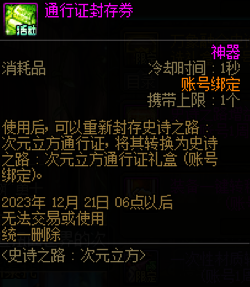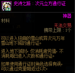 赛利亚特别商店花1金币兑换次元立方通行证,角色有了这张通行证可以不限次数的免费进入史诗之路。
