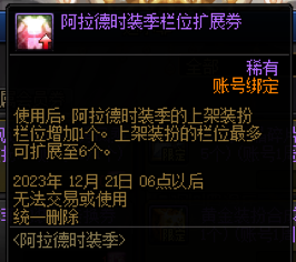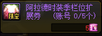 最开始1个账号只能上架1套装扮,通过使用阿拉德时装季栏位扩展券可以增加可上架的套数,上架装扮栏位最多6个。