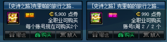 该活动在商城中上架2个礼包。分别售价5900点券、990点券,只能使用点券购买。