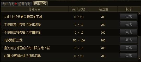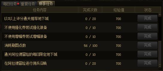 消耗刷图点的任务可以通过购买入场券、再购买反物礼盒退票的方式快速刷满,强化可以通过强化低等级白装完成。
