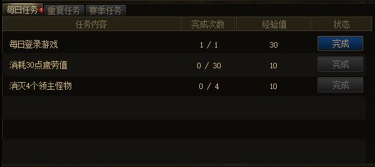 每日任务一共3个,共计可提供50点冒险经验,每日6点重置;
