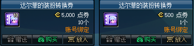 达尔菲的装扮转换券:通过拍卖行购买,500点券一张。