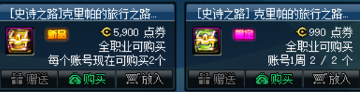 商城在史诗之路活动中也上架了2个相关礼包,不过很可惜都只能用点券购买。