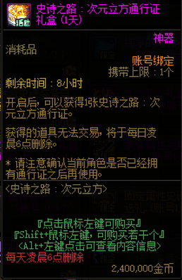 活动商店里还有一个有效期1天的通行证,建议在角色疲劳药充足的时候可以购买,一次清空库存。平时最好别买,价格比较贵。