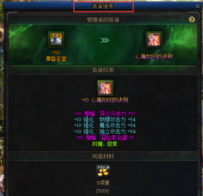 PS:神话装备在改版后是LV105装备,所以需要用继承功能。