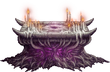 虽然有点模糊和失真,但也不难看出这个祭坛就是死灵三觉立绘中,坐在下面的祭坛,至于祭坛样子走的是典型黑暗风格,说恶心点更像是一堆生物构造起来的,中间的就是嘴……