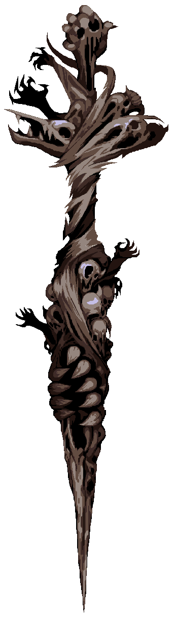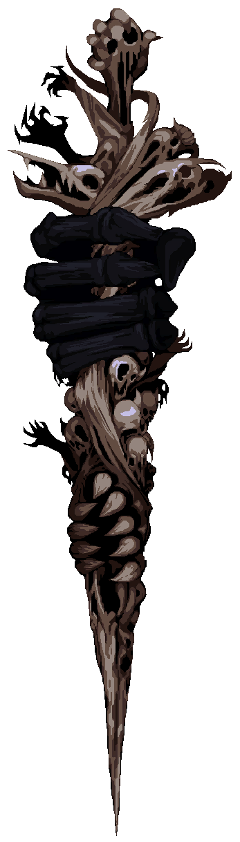 摩罗斯的器具,这东西应该归类为匕首,还是短剑?从设计细节上,满满的地狱风格,有怪兽利齿跟骷髅头,其中也有几处带角的头骨,从中可以看出摩罗斯负责的死亡不只是人类。