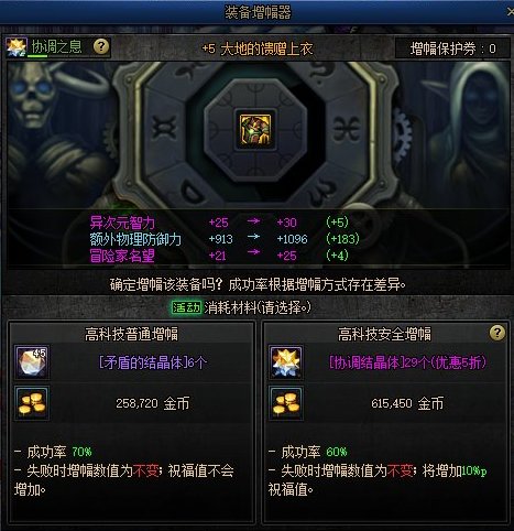 无论是安全强化还是普通强化都将为你节约一大笔金币,选择安全强化更会为你节约大量的协调晶体。
