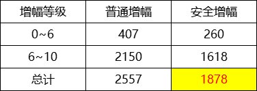 10上11不碎节约大量红字书/红字坯子,一般情况下安全增幅是要比普通增幅更省钱。