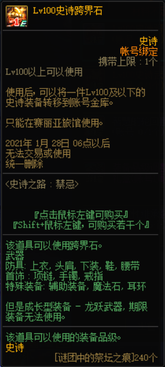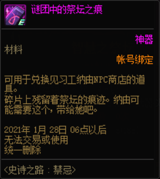 而「谜团中的祭坛之痕」能换的道具只有一个,那就是「Lv100史诗跨界石」