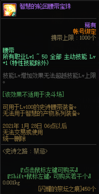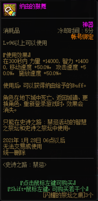 可以大幅度提升力量智力和三速,只能在史诗之路的两个副本中使用。