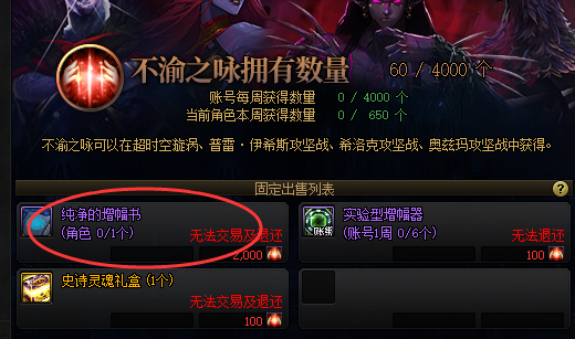 此时小伙伴可以通过不渝之咏商店和希洛克攻坚商店兑换到3本红字书,虽然该兑换都是角色限定,但小伙伴可以制作100级神器装备,打上红字后再跨给大号当做胚子,毕竟100级神器的跨界成本比红字书低很多。