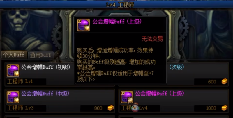 其实公会除了能够购买增幅秘药之外,最重要的是有增幅buff,公会提高工程师等级能够让小伙伴去购买增幅buff,最强力的上级buff能直接获得加算的5%增幅成功率。