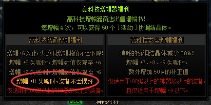 虽然仅对+7及以下的装备有效,但在小伙伴增幅胚子的情况下,提高了成功率就是变相降低成本,每件胚子都少增幅一次可是能节省下一大笔钱的。
