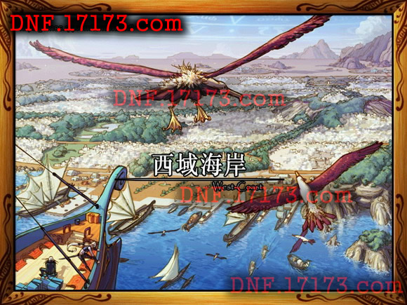 地图切换时的过场图片,看见“西域海岸”那几个字了吗?简体中文的!