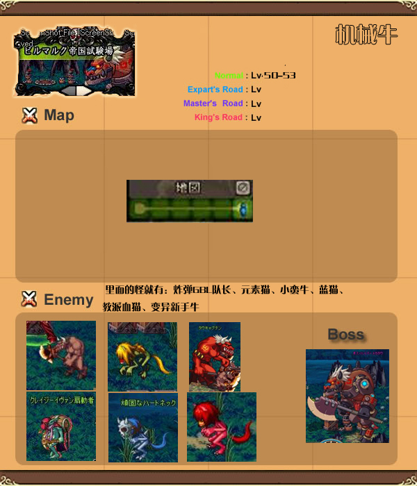 机械牛属于和冷龙一样的任务地图,需要材料换门票才可进入。除任务外不推荐刷。但是在没有更高级地图的情况下不得不刷机械牛升级,三SB到51就没经验了。