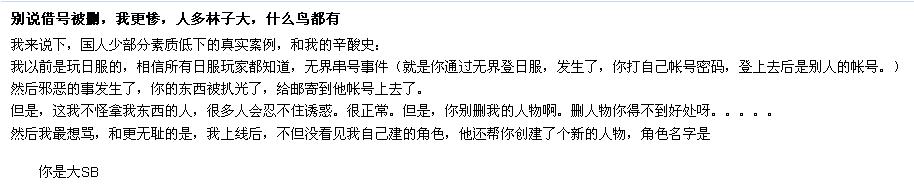 下面是在某些网站看到的被盗号玩家再论坛发布的谴责帖子- -#很强大哟·