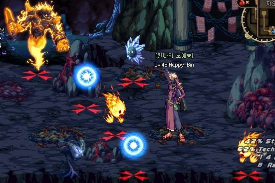进了新地图看了下,是46-49级的图。都是些元素怪物,地上还有陷阱和地雷,而且基本都不浮空无硬直。