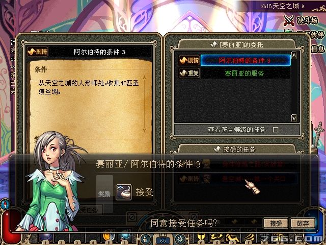 4,任务完成后回去找阿尔伯特,他要你去找赛丽亚,也就是每次大家进游戏时所待房间里的那位MM。我给大家标一下都在哪可以找到赛丽亚。