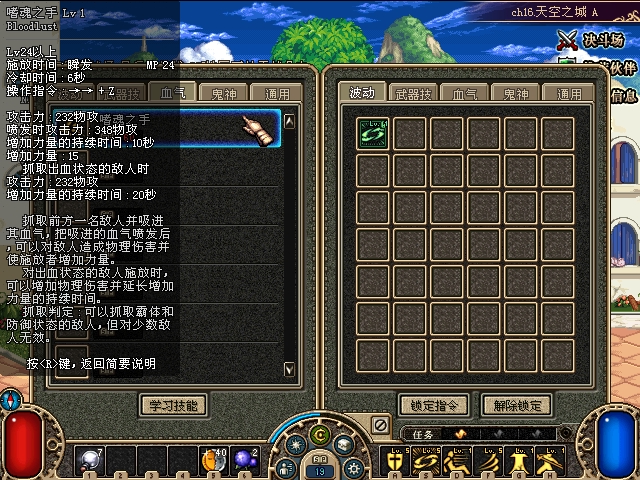 OK,现在我们看看有什么技能给我们学。我是剑魂,所以阿尔伯特提供了另三种同系其他职业的技能供我学习。