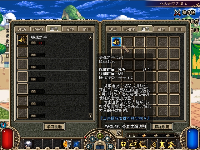 我选择偷学狂战士的嗜魂之手,PK过图都是很有用的技能哇!之后我们可以看到,其他技能仍可以学哦。这就表示,三个技能,只要是实用滴,只要你SP够多滴。那么就可以学习其他的技能或提升已偷学的技能等级哦!