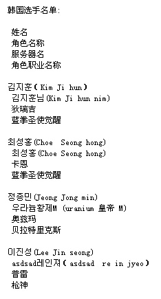 中国选手名单: