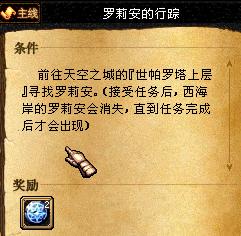但是20sp在同系列里。在A2过后 由于天空城改版 “罗莉安的行踪”任务变更为“行踪不明的罗莉安”但是同系列的奖励同为20sp