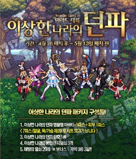 前几天已经发了好几篇体验服的童话套的情况,这篇文章就先从韩服的这次“奇异王国时装套”开始咯。~爱丽丝梦游奇境~