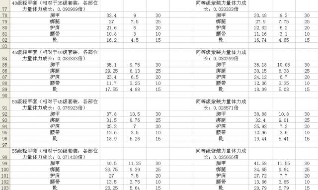 8、防某些坛友误解,特别解释一下:表格里所写的例如25级装备,所代表的是5个部位都是25级的。