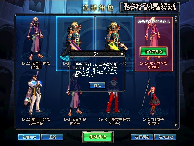只有一次机会!你进入游戏所选择的第一个角色,不管是哪个区,不管是大号还是小号,并且不能交易!