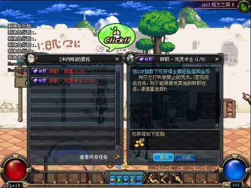 暗夜使者18级后,可到位于哥布林商人夏洛克左边的导师米内特处接取转职任务