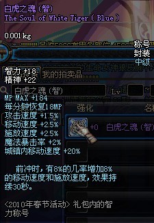 刷图PK皆超好使用的称号.高属性和攻速,移速等的加成.再加上变态的8%前冲加成使得这个称号成为现在最热手的称号.PK时前冲带来的30秒移动8%加成效果超群.虽然有大概50秒的内置CD,但也无法掩盖这个称号的强大.完全可以在触发效果后换其他称号使用.已经绝版价格不菲