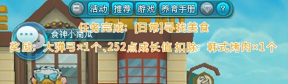 友情提示,当在合适的时间段里,找到了贩售摊,建议大家多买点,这些好吃的东东价格不贵,只需10元宝,就可以尽收囊中。不过,这些美味可口的东东,小熊宝宝们,请先不要着急吃掉,因为,有了他们,还可以跟食神小南瓜兑换到丰厚的奖励。