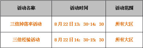 为了补偿7月25日缩短三倍经验时间及8月15日停机1天而给玩家造成的不便,8月22日,全服开启三倍物品掉落率和三倍经验活动。这个周日,DNF史上前所未有的狂欢活动嘉年华,等你来体验!
