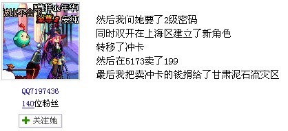 然后又突然出现装纯情好青年,一片爱心向灾区。(小编吐槽一句:不要拿任何灾难来说事,这会引起公愤的,看来这人是没救了。)