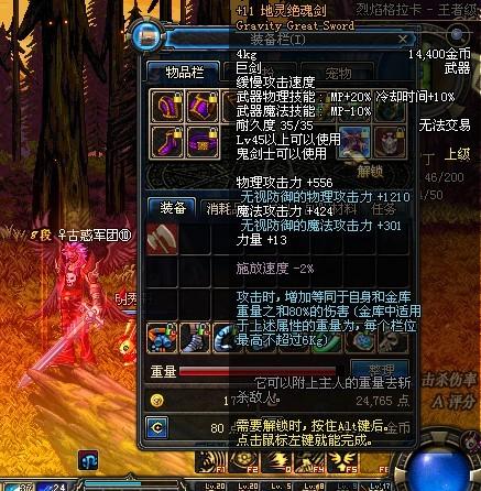 无视攻击+401~呵呵,可能大家觉得没什么,站街攻击才2188.但它有一个意想不到的属性.我也解释不清楚,自己看吧.