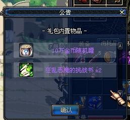 里面的道具为狂乱恶魔挑战书和10W金币罐。