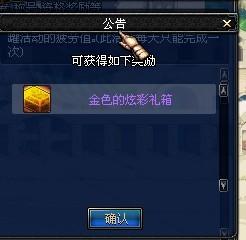 每天消耗118疲劳的金色的炫彩礼箱。