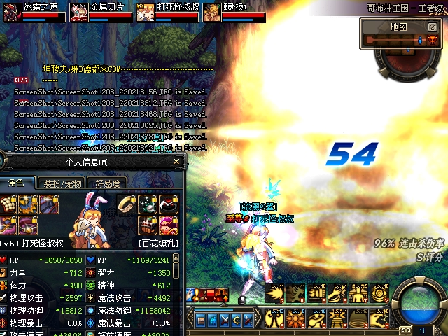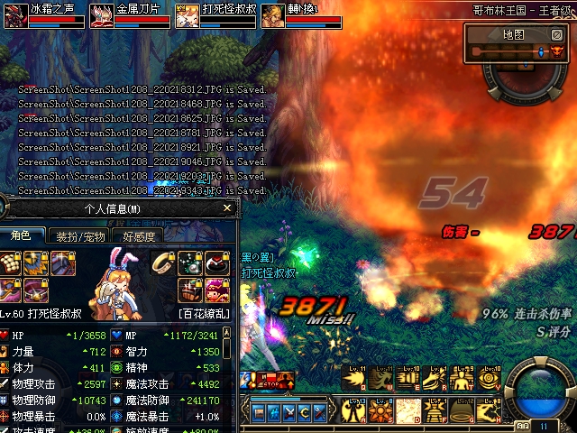 三 118W魔防+印纹肩膀+猫拳=3871伤害,爆炸把我直接秒杀,为什么剩余1HP是因为金身加的复活。。。。面板HP为3658 实际伤害为3871,如果没有金身复活的话,当时我已经倒了