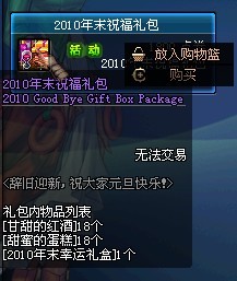 礼包包含3个东西,甘甜的红酒,甜蜜的蛋糕盒2010年末幸运礼盒。
