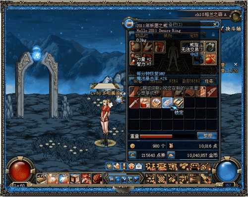 所有奖励,倾情给力,玩家们最喜爱的挑战书、复活币、契约等应有尽有。最令人兴奋的是点亮终极花灯,可获取“新年快乐礼”。绝版首饰、2011祈愿之镯、2010祈愿之戒等,只能拥有,绝无错过。