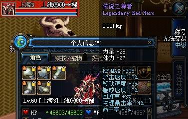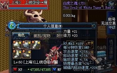 然后是开场带死神,接着换上白虎。突然血量骤减了,直接从5W7跌至5W4,所以相当于70级血装和谐的效果,而非目前血装的效果(换掉之后HP仍在)结论:称号不可堆血装