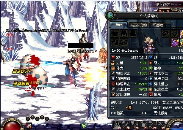 绝杀收招在不拿武器面板物攻35 力量499 的状态下,依然能够达到8500的伤害数据。