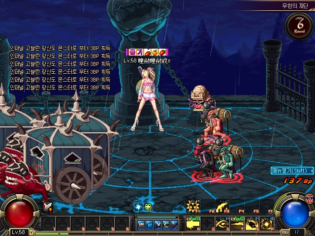无尽祭坛总共有3个房间,15轮怪物出现,每5轮换一个房间。最后一个房间的怪物是固定的,前面两个房间的怪物是随机选取的。具体分为:蜘蛛族、异界龙人族、史莱姆族、驱逐者、猫妖族、异界哥布林族、不死族。每个种族分别有一个精英怪和BOSS,精英怪的附加能力是随机的,有加速、霸体、攻击强化等